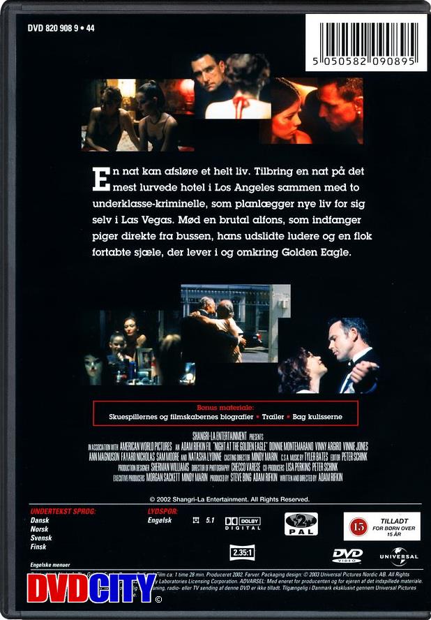Night at the Golden Eagle DVD Vinnie Jones | eBay from i.ebayimg.com 2001 film by adam rifkin. Two old criminals are spending their last night in l.a. Night at the golden eagle is a 2001 american film written and directed by adam rifkin. Your score has been saved for night at the golden eagle. At the golden eagle hotel before leaving town for a life without crime. Night at the golden eagle is a 2001 american crime drama film written and directed by adam rifkin. You will get a notification at the top of the site as soon as the current price equals or falls below your price. You can also optionally receive an email notification (sent only once), this is specified in your site preferences under my price.